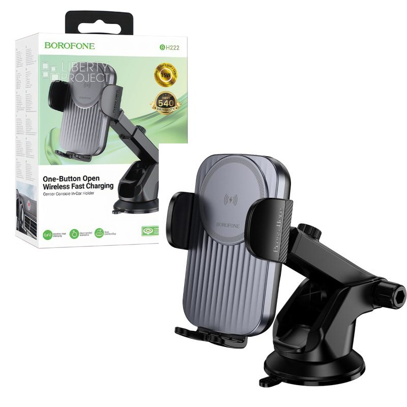 Multifunctional car mount with push-lock mechanism and built-in wireless fast charging.