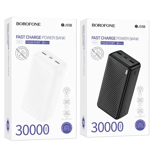 The HOCO BJ55B Graceful Power Bank offers a sleek design with a powerful 30000mAh capacity, ensuring reliable charging for all your devices anytime, anywhere.