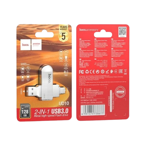 The HOCO UD10 128GB flash drive is built for efficient storage and quick access to files. Its compact design and Type-C interface make it ideal for users needing flexible and secure data storage. Key Features: 128GB storage capacity Type-C interface for modern devices High-speed data transfer Compact and portable design Durable construction Compatible with smartphones, tablets, and laptops