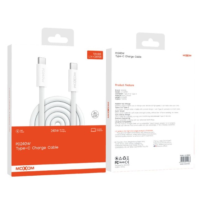 2-meter USB-C to USB-C high-power cable supporting up to 240W for fast and efficient charging of compatible devices.