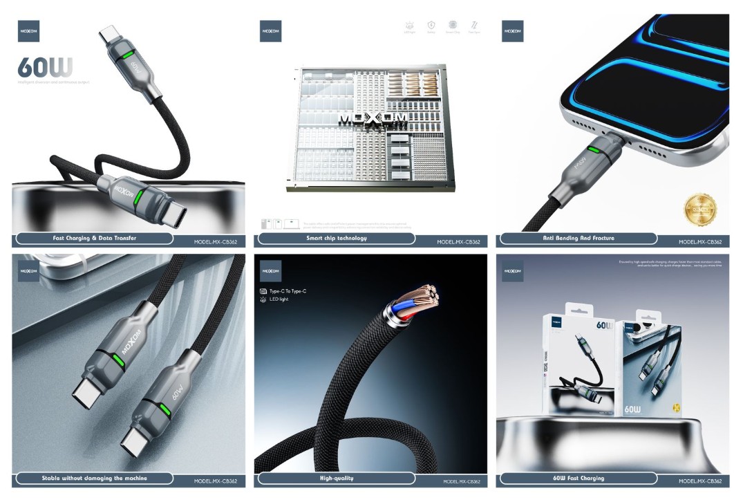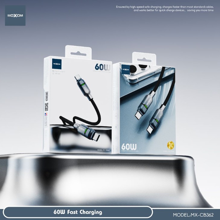 The MOXOM MX-CB362 is engineered for 60W fast charging, offering efficient and reliable performance for all USB-C devices.