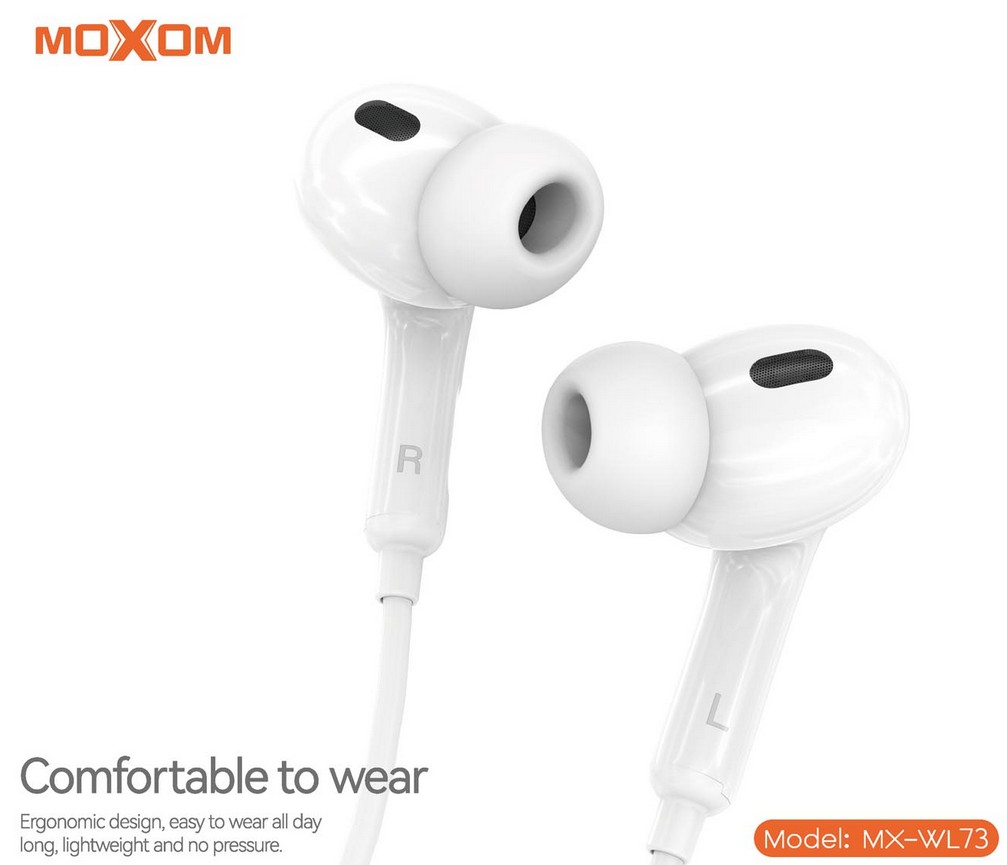 The MOXOM MX-WL73 neckband headset combines stylish AirPods Pro-inspired design with reliable wireless performance. Offering clear sound, comfortable fit, and long battery life, it is perfect for everyday listening and communication.